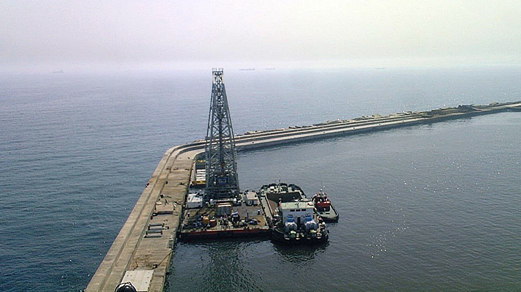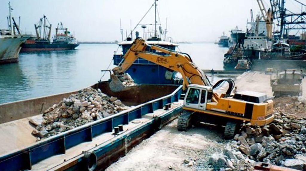 50-65 tonluk prekast beton blokların yerleştirilmesi.